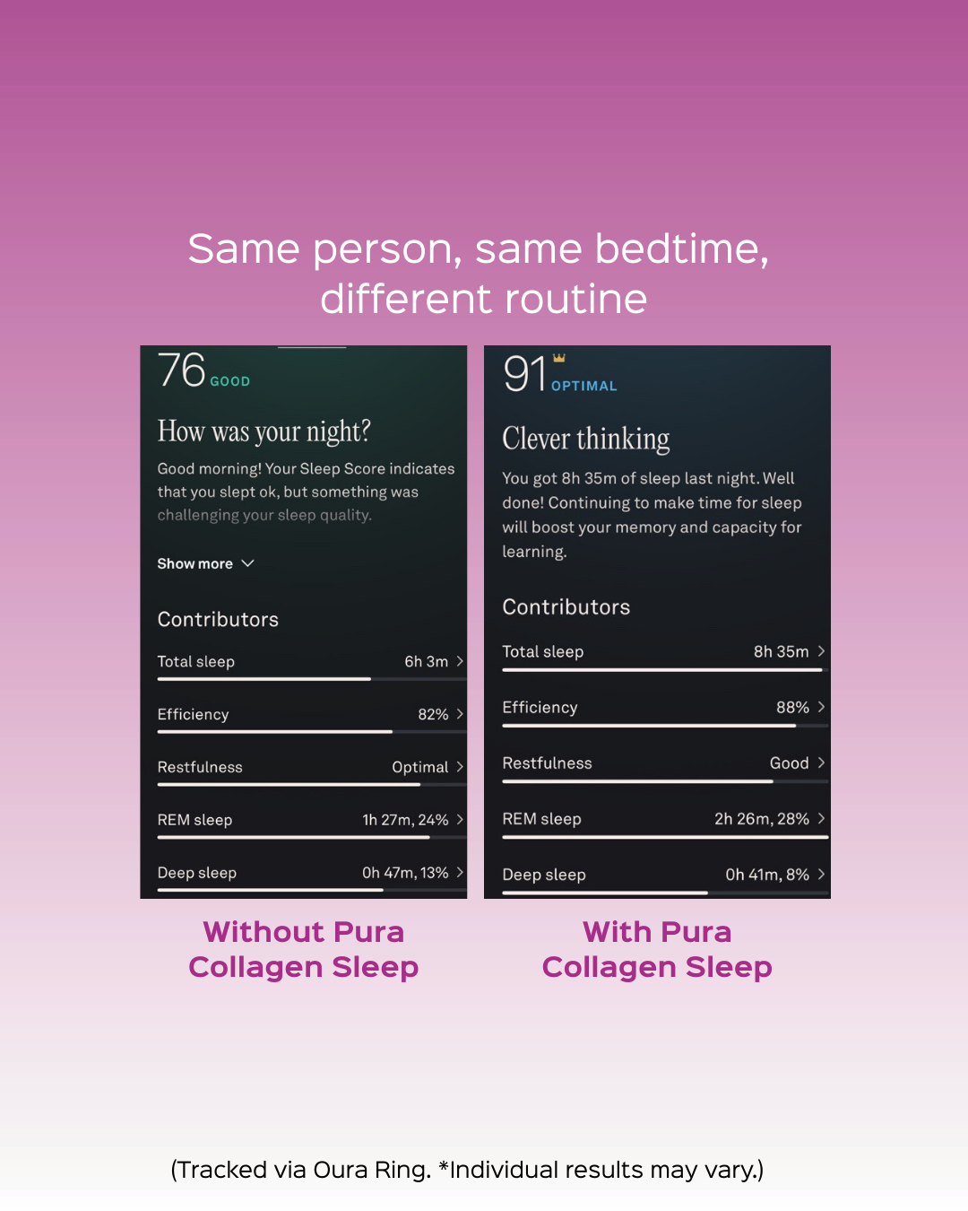 - Enjoy Pura Collagen Sleep 20-30 minutes before bed for the best effect