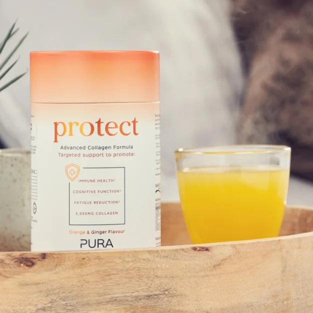 Protect is a naturally flavoured orange and ginger collagen powder that promotes immune system health, reduces fatigue, and boosts cognitive function. It bolsters your body’s defences from your skin to your immune responses, making it the perfect partner for Flex+.
